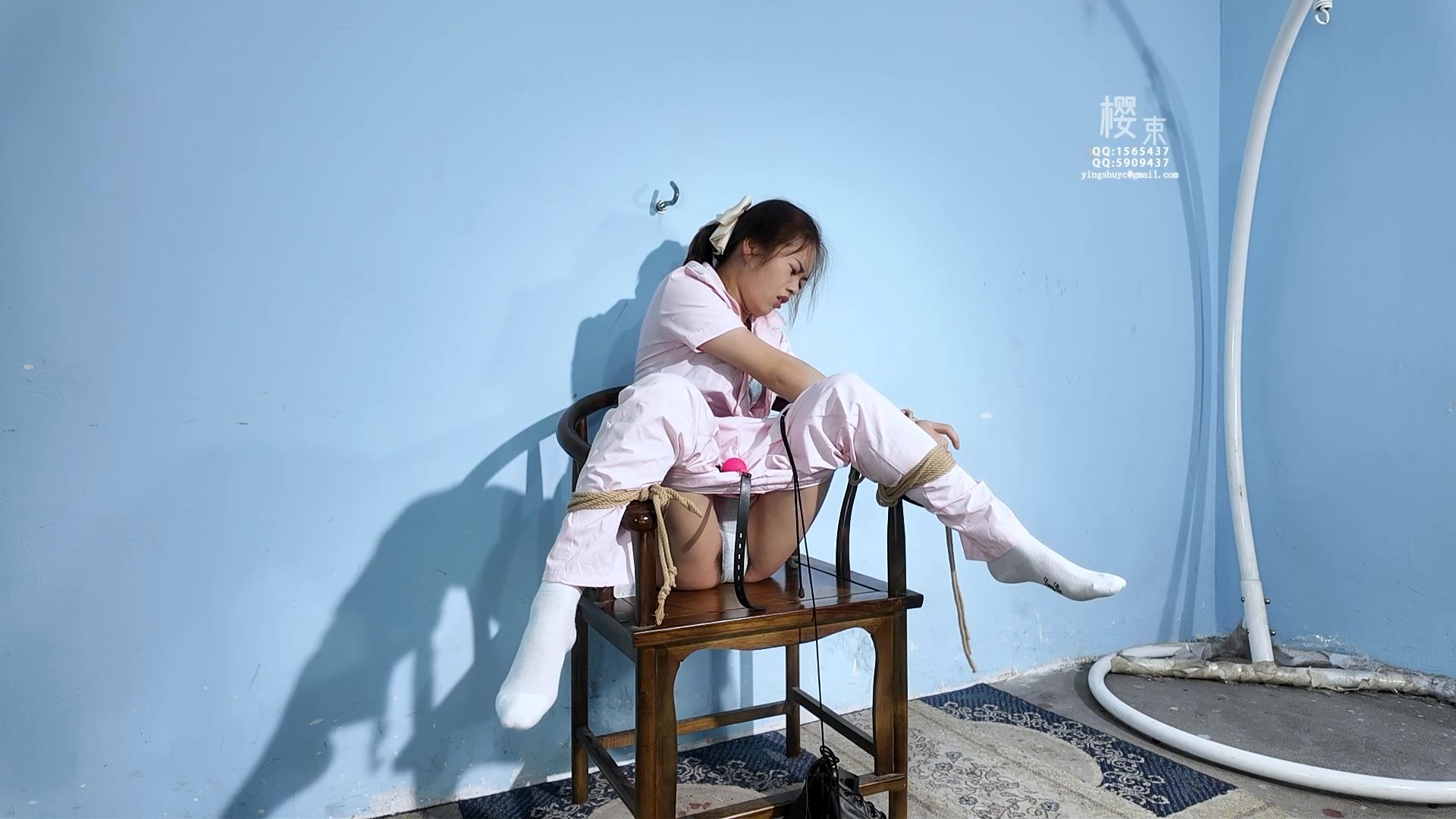 【意之窗原创】【汤圆】真空袋窒息+固定木质刑架+绳子勒B+滴蜡+Z