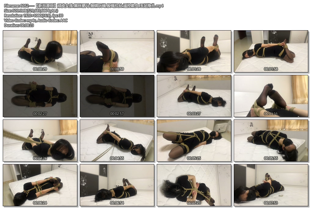 【新月原创】顽皮女孩 黑丝驷马 捆绑玩绳 股绳拉扯 遥控欺负 玉足挣扎