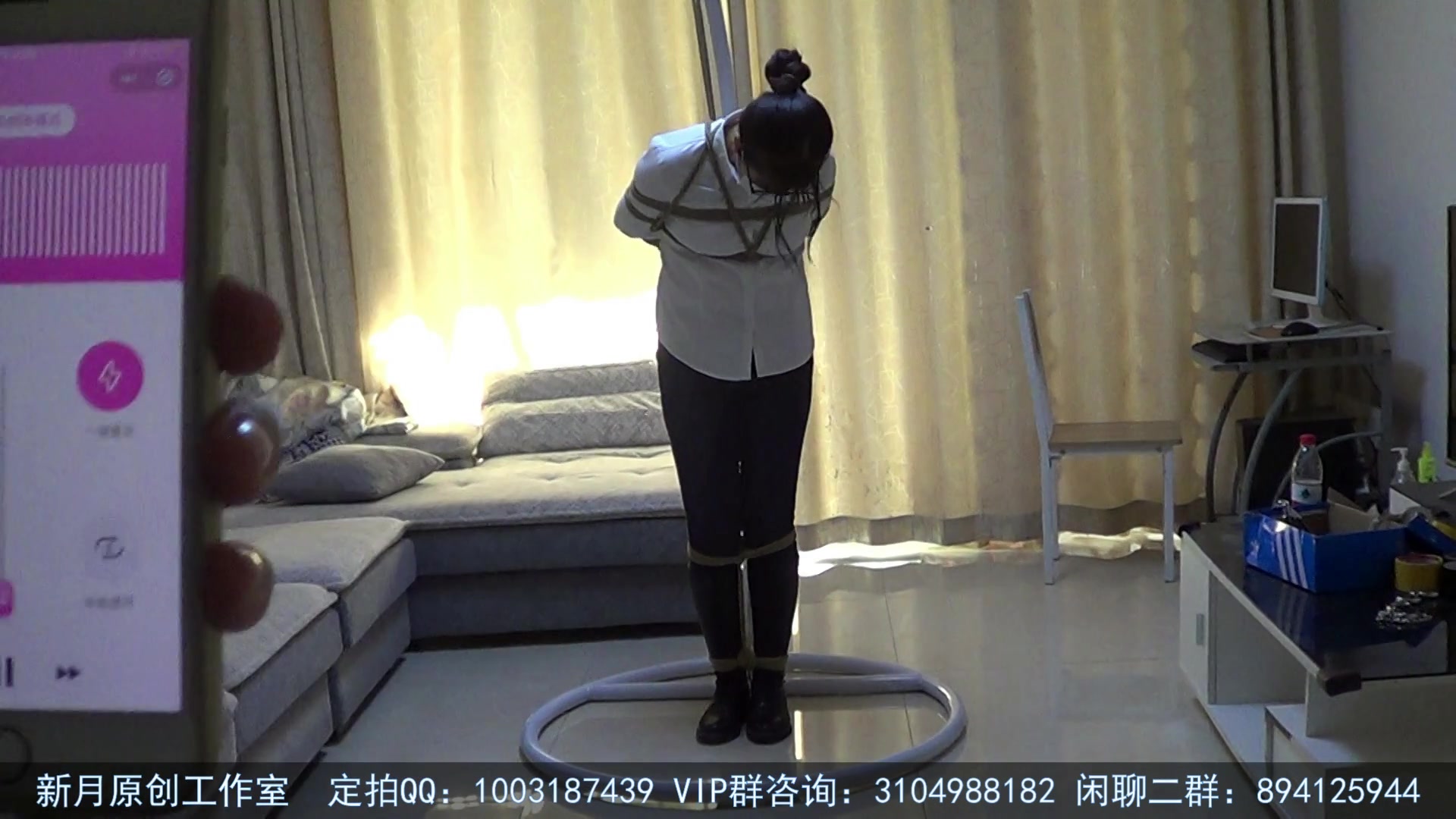 作为一个要被惩罚的长靴女孩,必须是先吊绑固定在架子上,然后让她感受什么是遥控忍耐,要不是吊着身体,小玉都快要想蹲下来了。