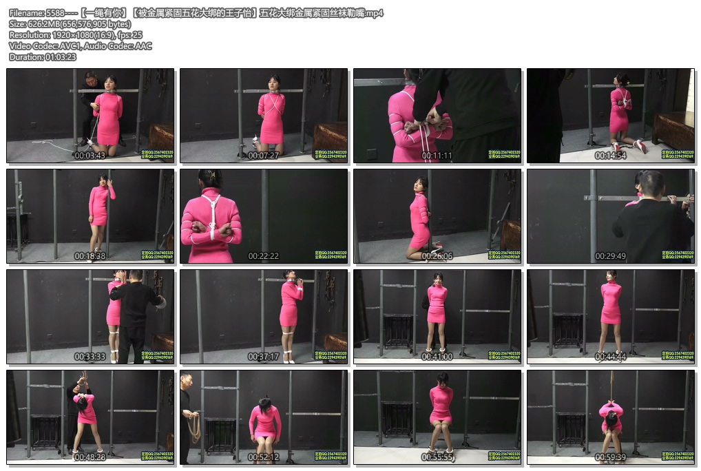 漂亮的王子怡被丝袜勒嘴五花大绑后禁锢在金属刑架上展示!