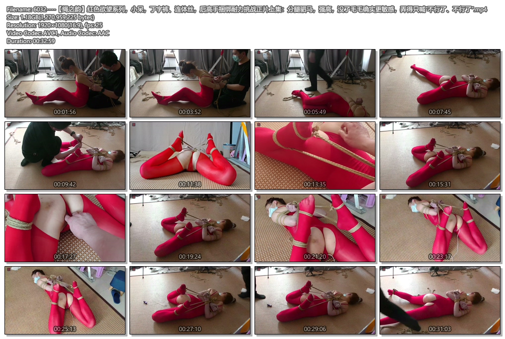 【绳之韵】红色欲望系列,小呆,丁字裤、连体丝,后高手捆绑耐力挑战正片上集:分腿驷马,强高,没了毛毛确实更敏感,弄得只喊“不行了、不行了”
