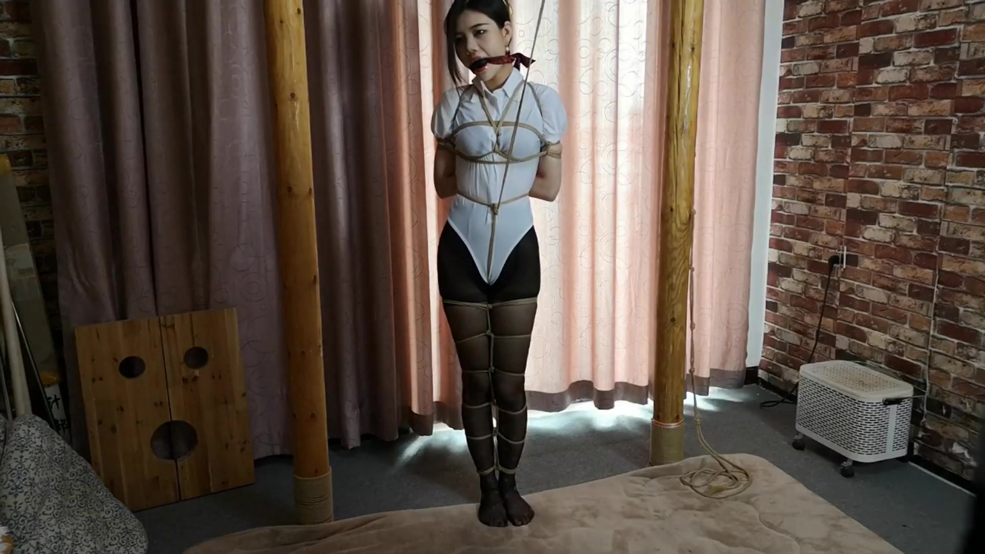 【束缘阁】文慧白衬衣皮裙 柱子全身固定