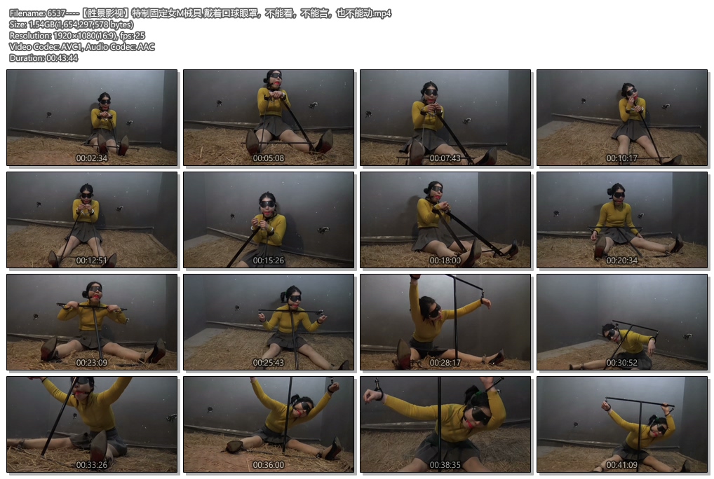 【胜景影视】特制固定女M械具 戴着口球眼罩,不能看,不能言,也不能动