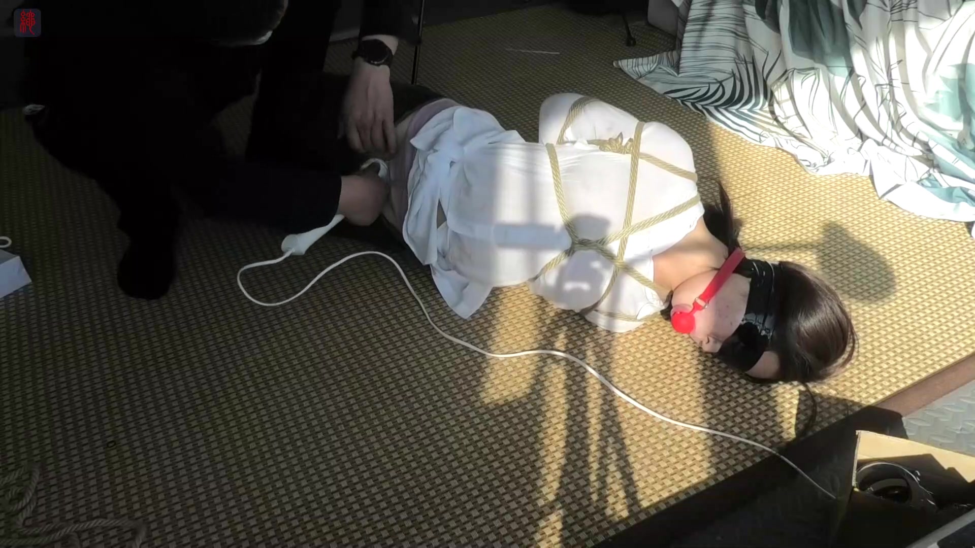 【绳之韵】敬业的女销售小凡,半透白衬衣、牛仔裤、白袜、运动鞋,驷马紧缚,刺轮、毛刷、震动乳夹、强力棒,股绳深陷的小翘臀、沉默羔羊的110分钟炼狱TJ(片头有个小彩蛋)
