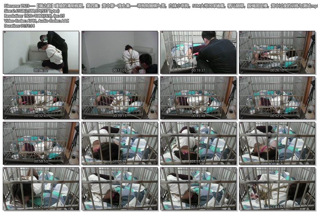 【绳之韵】瑾瑜的清明假期,第四集:笼中第一夜上集——乖狗狗捆绑入笼,白袜小乖狗,5CM大号口球堵嘴,驷马捆绑,股绳固定棒,笼中过夜的训练与测试