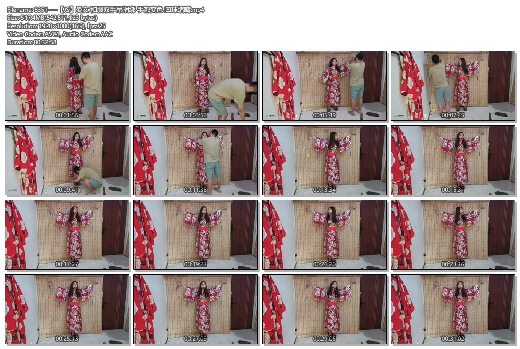 【JS】曼文 和服双手吊捆绑 手部变色 口球堵嘴 ...