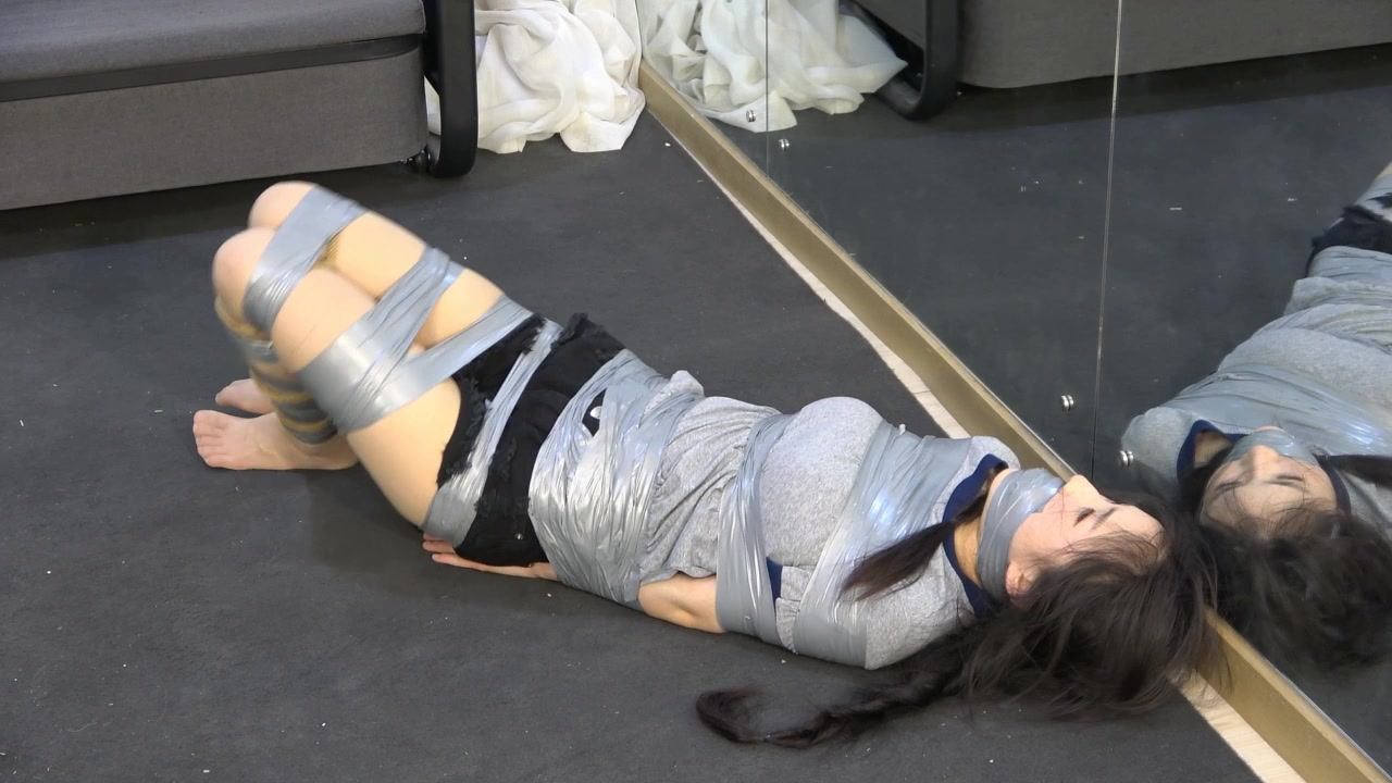 穿着牛仔短裤的小狐狸被绳子加胶带紧紧捆绑全身,她试图用自己的肉丝美足把自己装在包里的手机够出来,以便打电话求救逃脱,下场却是驷马惩罚,双手合一被胶带紧紧抱住。